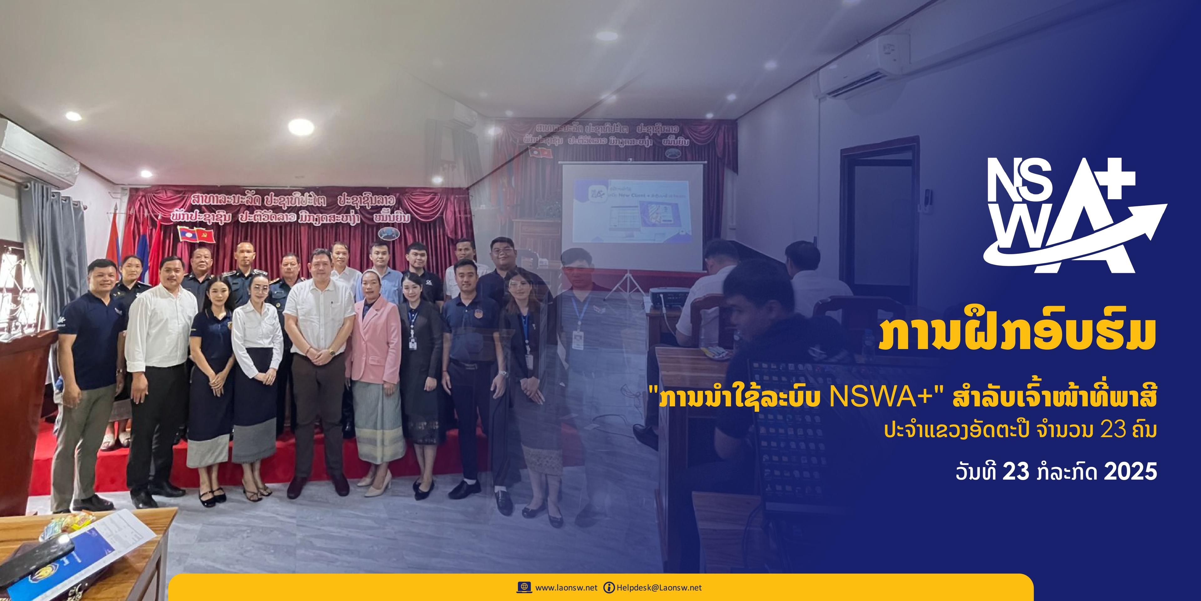 On July 23, 2025, we organized a training course on the "Use of the NSWA+ System" for provincial customs officials in Attapeu.