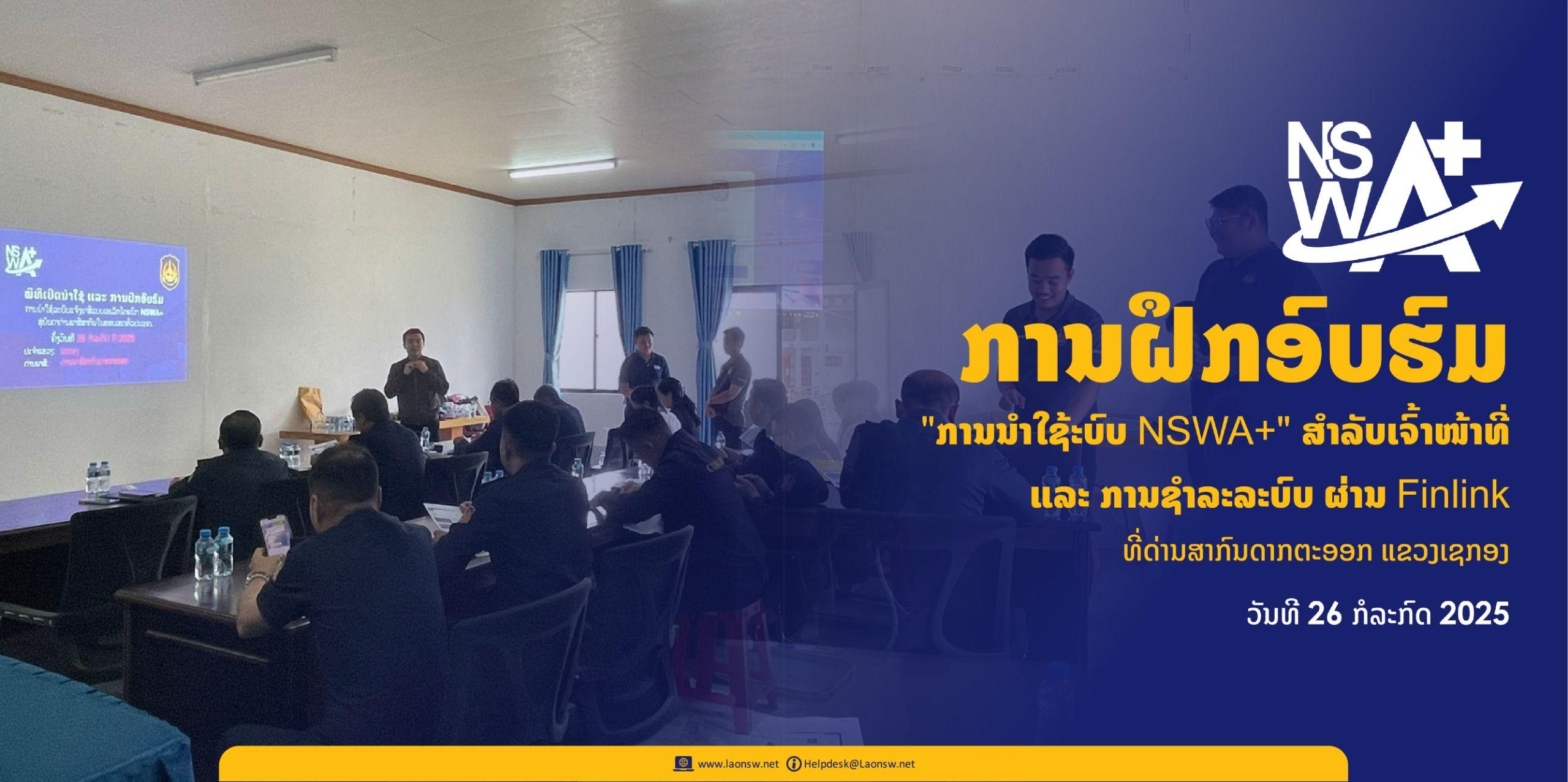 On July 26, 2025, a training session was conducted at the Daktaok International Border Checkpoint in Sekong Province. The training covered the use of the Tax Declaration System by Consolidation, the NSWA+ system for relevant officers, the tax payment process through the Finlink system including the tax payment reporting interface, and the use of the LIFMIS system interface.